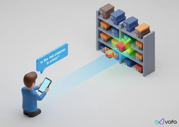 - نتیجه: مشتری عکس یک کفش را می فرستد و می پرسد: "این مدل سایز ۴۲ موجود دارید؟" ربات در کسری از ثانیه انبار را چک کرده و پاسخ می دهد.
